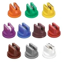 Cerâmica é disponível com o corpo da ponta em polipropileno resistente à corrosão, com código de cor VisiFlo, em 80° nas capacidades de 03–08 e 110° nas capacidades de 02–08;