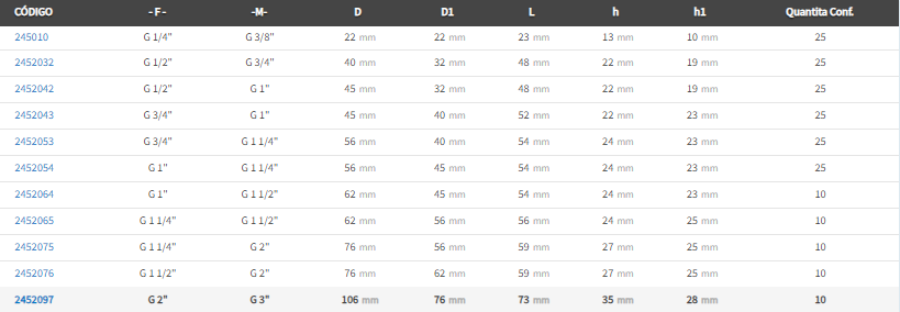 CONEXÃO TIPO REDUÇÃO MACHO/FÊMEA;