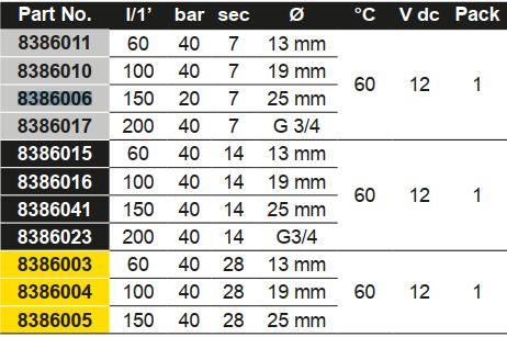 VÁLVULA DE REGULAÇÃO VOLUMÉTRICA ELÉTRICA COD: 8386038 a 8386005; CINZA ( 7 SEGUNDOS); PRETO ( 14 SEGUNDOS); AMARELO (28 SEGUNDOS).